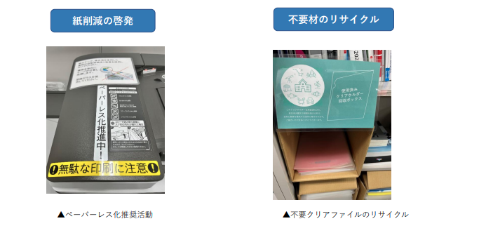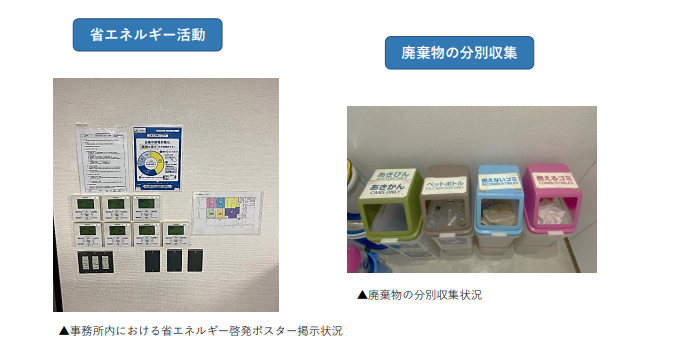 また、事務所内では社員全員が環境意識を共有できるよう、取り組み内容を掲示し、日常的に意識できる環境づくりに努めています。